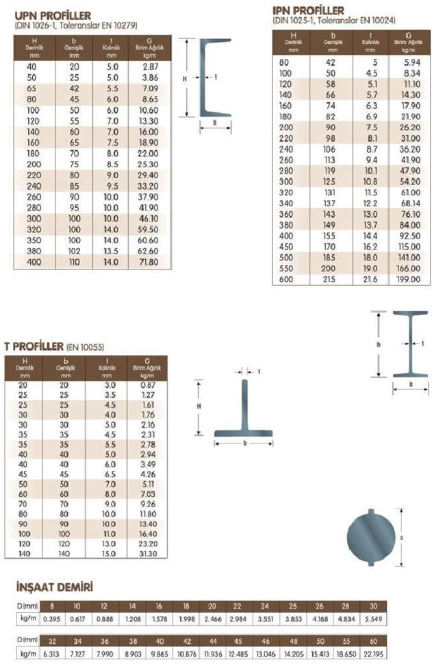 NPU DEMİRİ AĞIRLIK TABLOSU